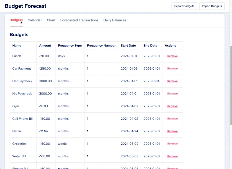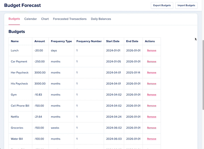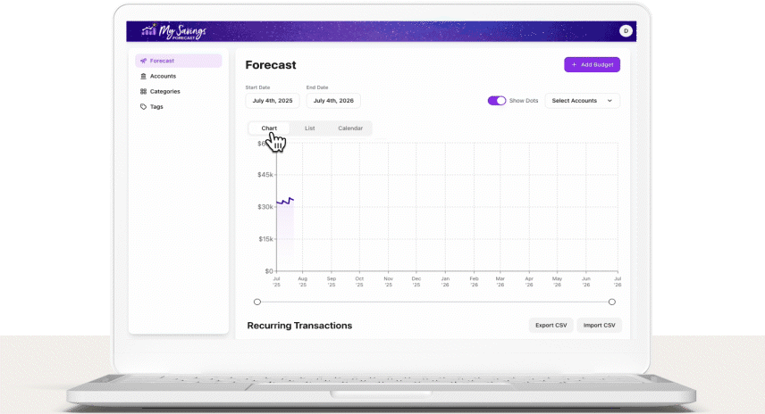 I previously subscribed to a budgeting app called Pocketsmith, which allowed me to forecast my bank balance based on my budgets/recurring transactions. However, I was not satisfied with the app’s experience. I replaced Pocketsmith with Monarch Money for its elevated experience and ease-of-use, which left me with the need for a forecasting solution. I decided to create my own forecasting app, but would improve upon the shortcomings of Pocketsmith’s experience.